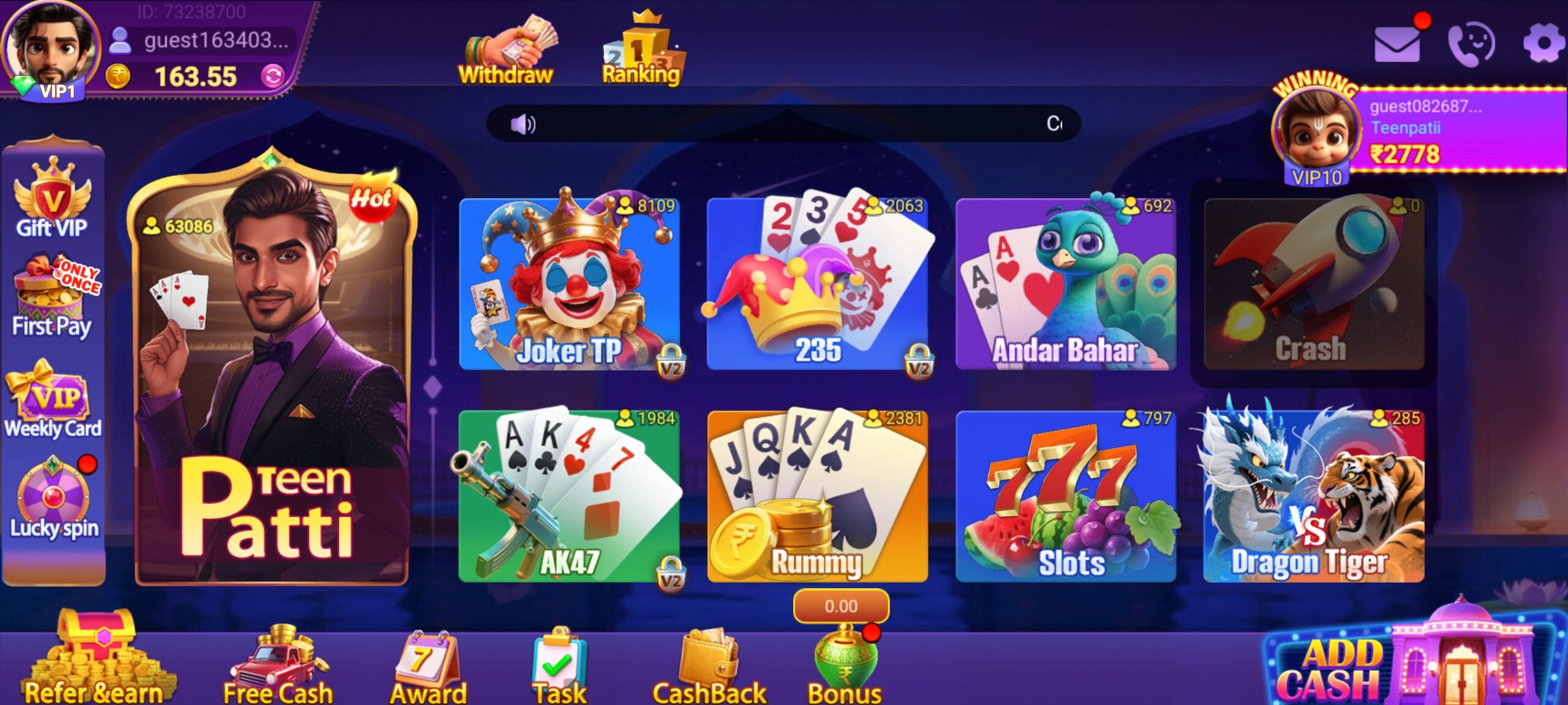 This game is a scam they deliberately provide in a manner that users will add money but at the time of withdrawal they ask to add money despite of fact there is balance Moreover users is allowed to withdraw the amount less then he deposited and they are violating Gambling Act 2025