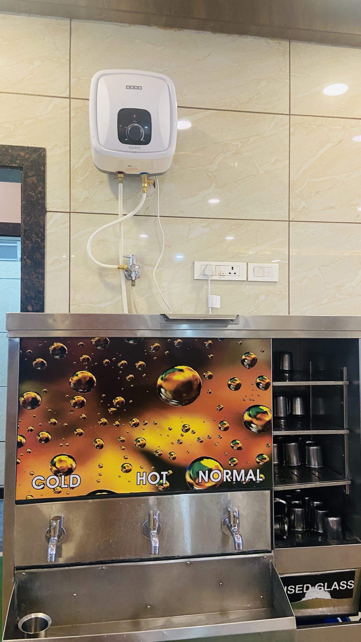 Geyser is being used for hot water consumption instead of purifier. This could be a dangerous, since geyser water contains the scale deposition in the tank. This issue should be looked in to with utmost priority.