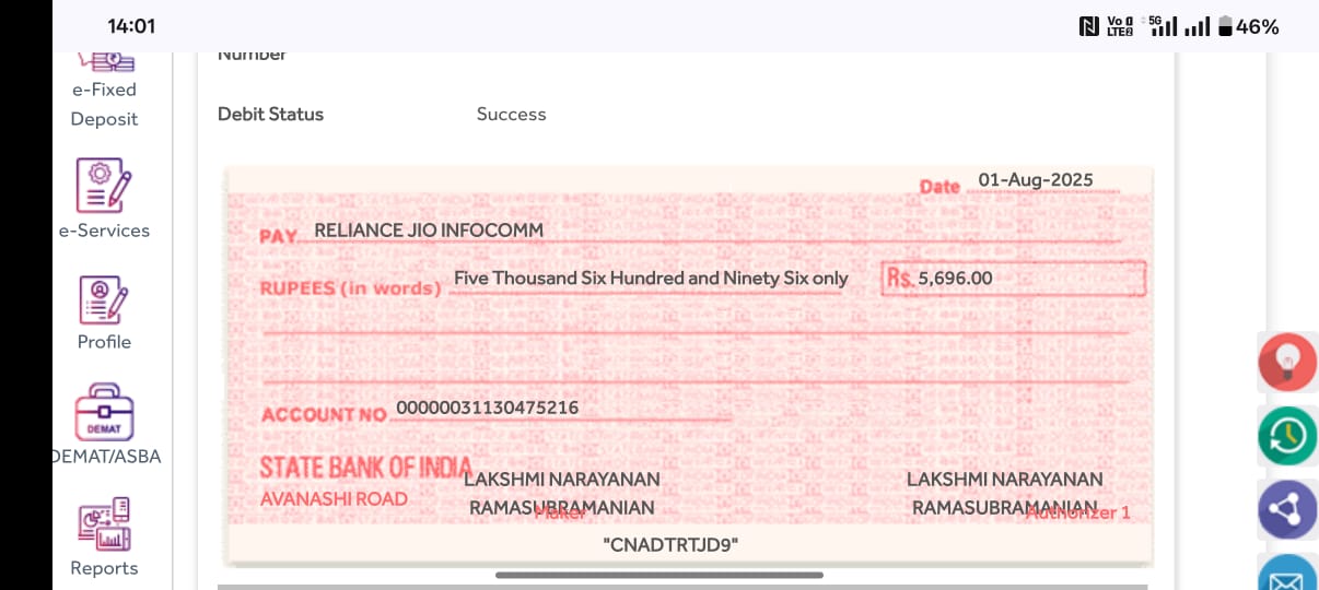 we had approached JIO ERODE office for porting 15 sim numbers from vodafone to JIO …We have been using the numbers for our corporate purposes .We approached JIO Erode and one Mr Vimal Raj working for JIO cONTACT NO 8667479200 and he assured us for porting and demanded us to make a front payment of Rs.5701 to m/s RELIANCE JIO INFO COMM We made a NEFT TRANSACTION TO RELIANCE JIO ON 1st August2025