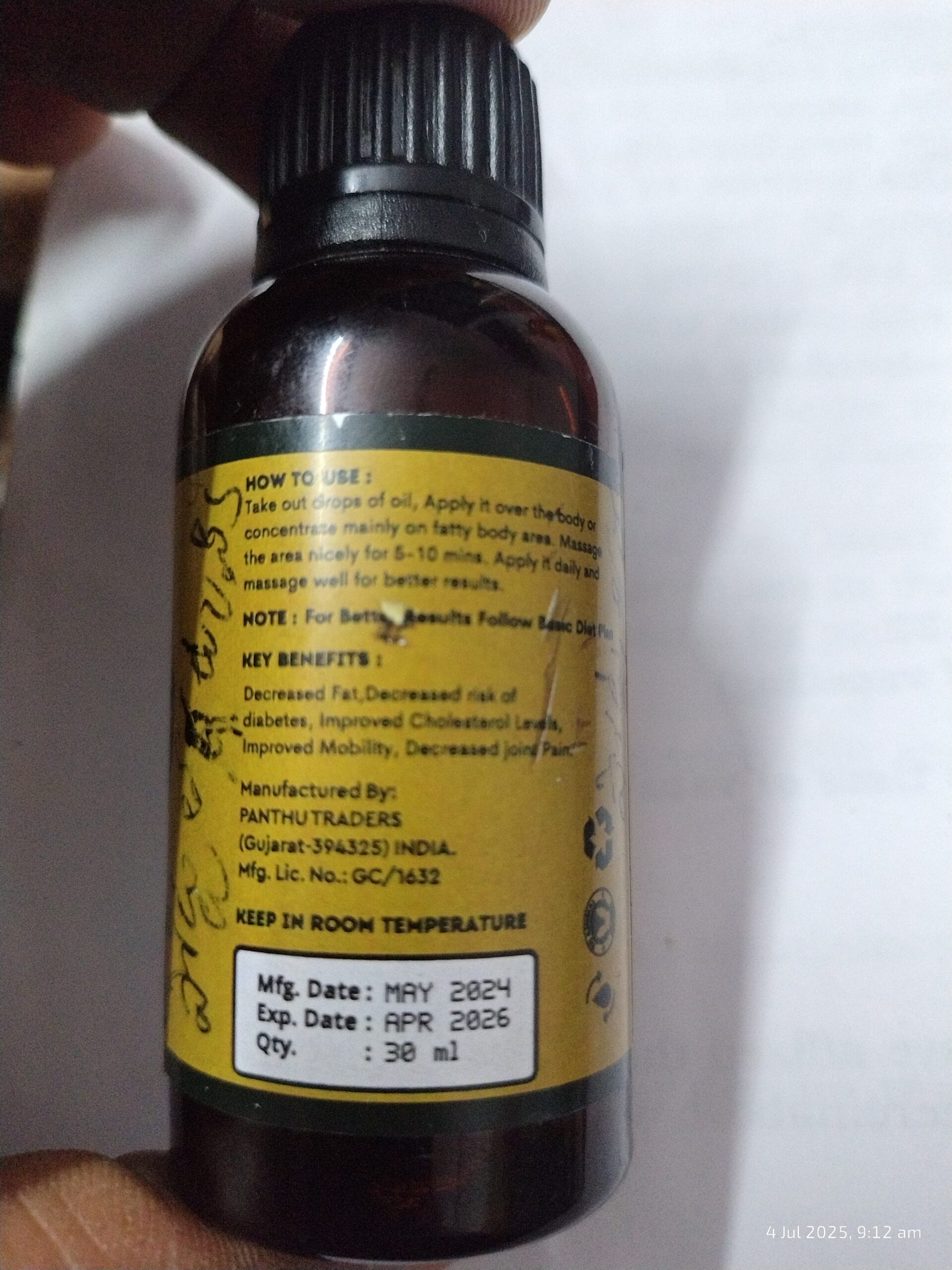 We got weight loss oil from online That Name is PLANT AROMA OIL GINGER ESSENTIAL OIL