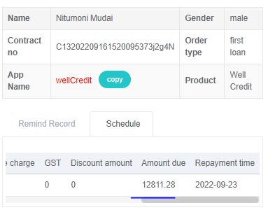 On 16th September, I received an amount of Rs 7000 out of nowhere. Since I forgot about the app, i thought this might be a human error transaction made my somebody in the name of Veena Trading. I thought if I get a call from the bank I will return it back. Time went by, Nobody called. On 23rd September 2022. I got a text message at 7:07AM which says–”Nitumoni,today is your repayment day, please open wellcredit to repay immediately, otherwise your credit record will affect and may incur i fines.-wellCredit”