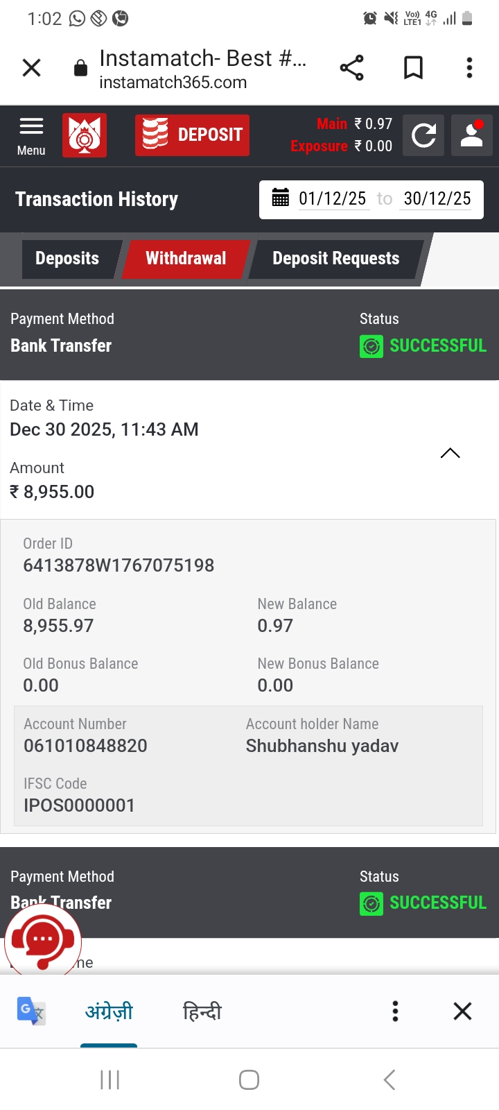 Sir, I had deposited Rs 3000 in Winmatch game and I had deposited Rs 8955 for withdrawal from the game. Till 31/12/2025, it has not been received yet and my account has been blocked. Please help me sir.