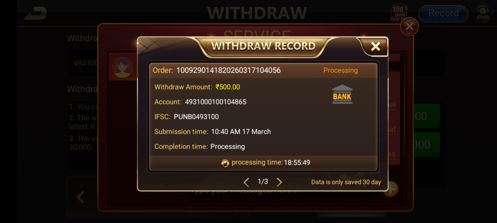 500 withdraw money processing date 17 march 2026 time 10:40 am