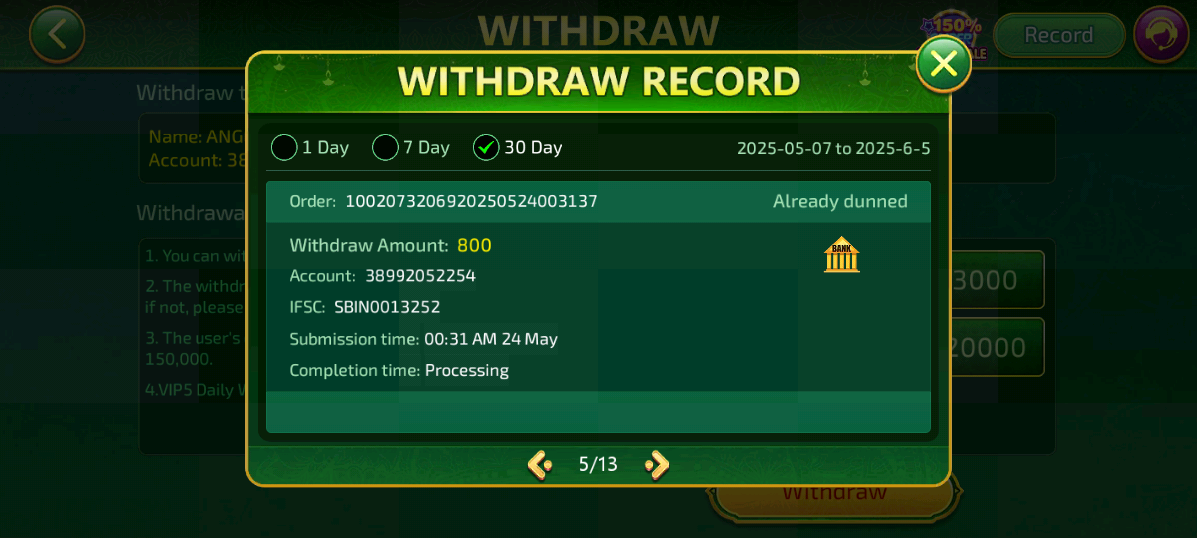 I had recharge of almost ₹8000 but didn’t receive winning withdrawal money and the shocking part is I am VIP5 user but can withdraw only ₹100 a day excluding the two 800s withdrawal .