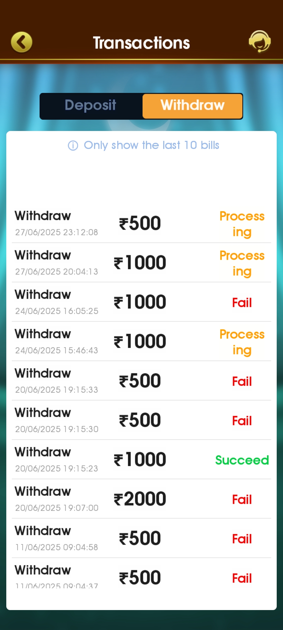I withdraw ammount in teen patti stars game and teen patti won games but after waiting of 3 to 6 day withdraw ammount was cancel.