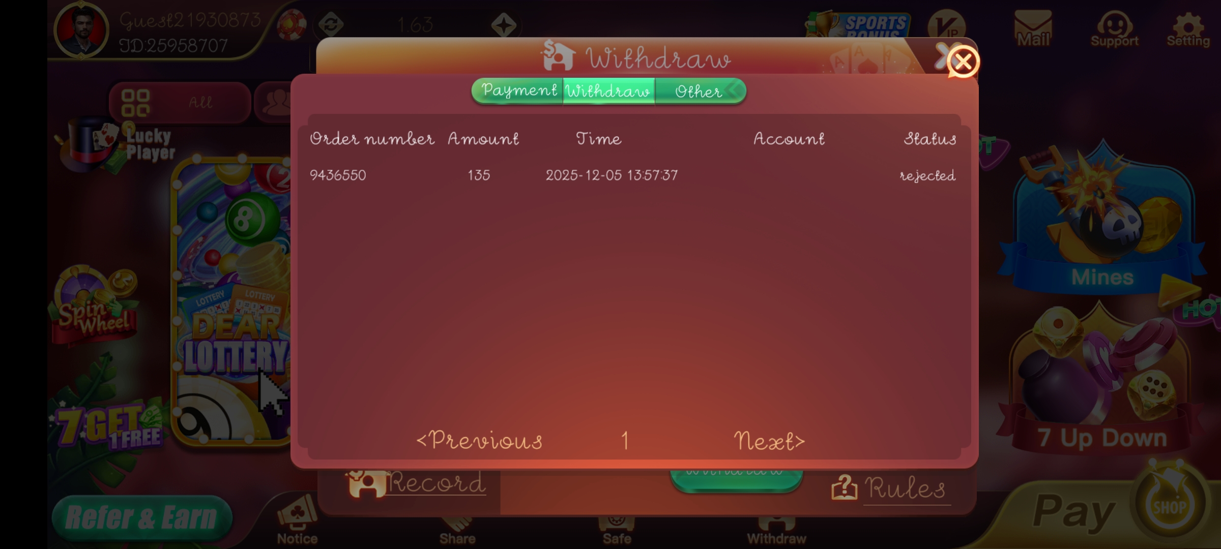My rummy ola game withdrawal rejected .