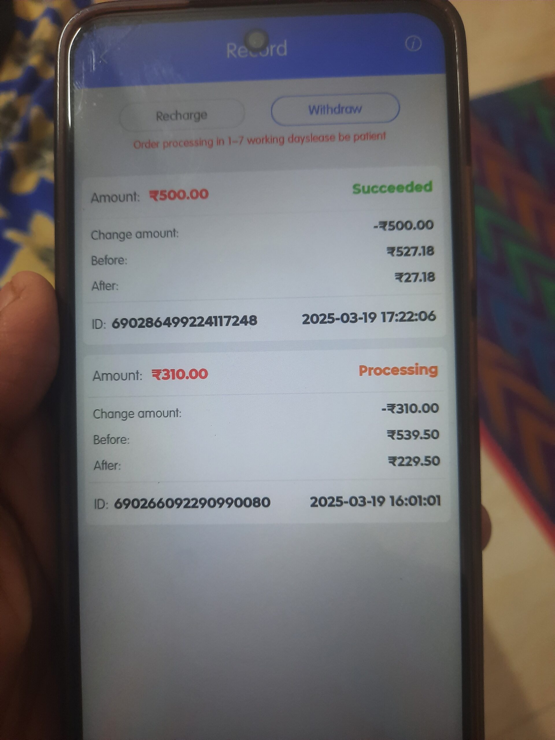 Maine 19 tarikh ko 5 pm ko 310 rupees withdrawal kiye the lekin abhi tak amounts bank account me aaye nhi
