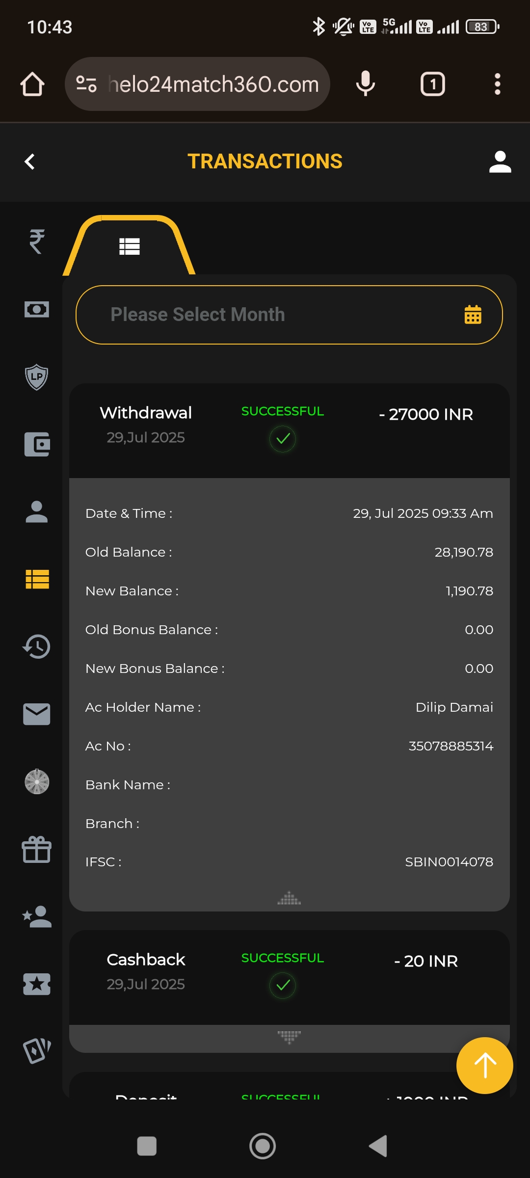 I was withdraw money winning money 3 time fast ₹1000 second ₹3000 third ₹27000 in total ₹31000 .in the app it’s showing successfull
