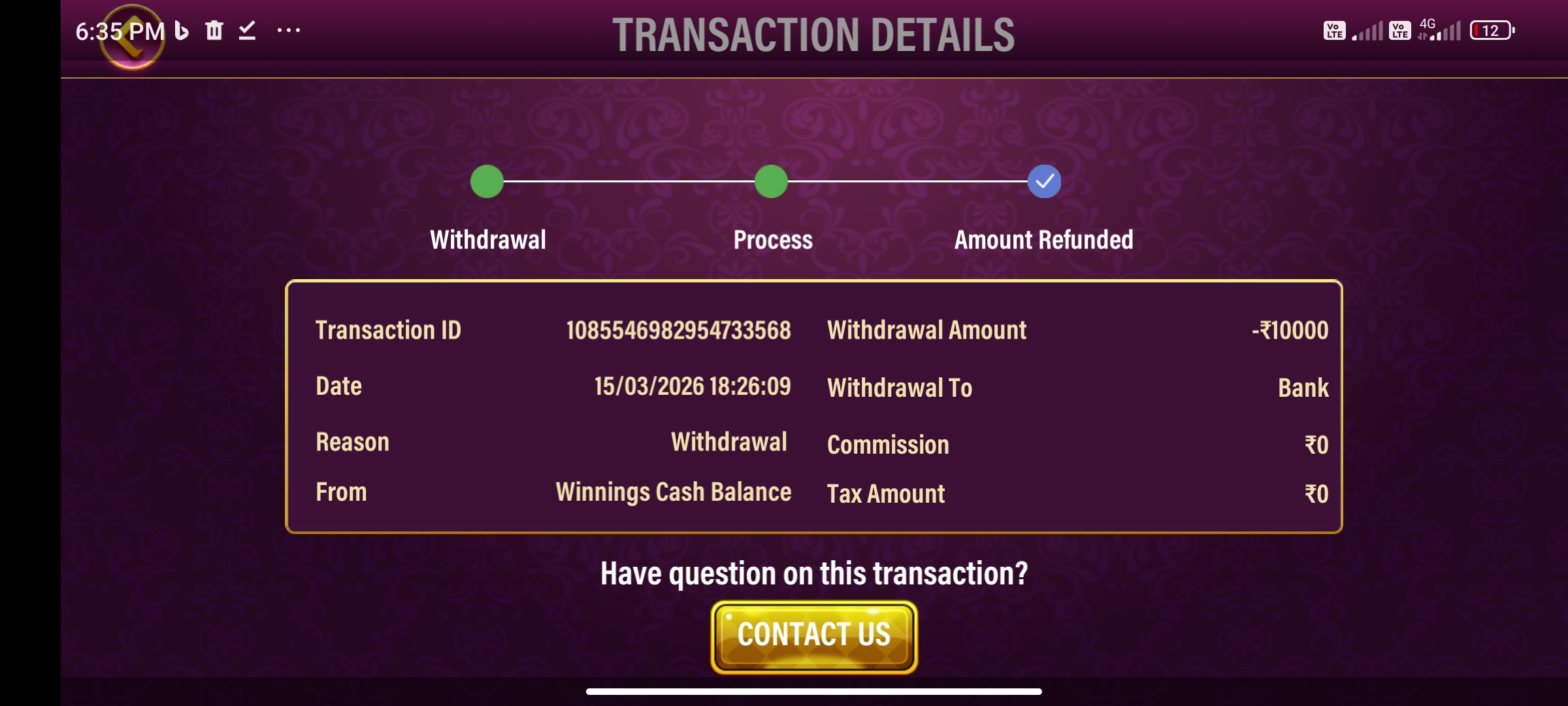 When I’m withdrawal money it’s refunding every time automatically but not withdrawing wallet amount to my account