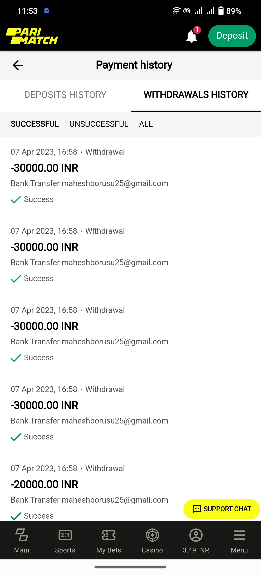 1. 21/04/2023 12:17 10000/- and 21/04/2023 1:38 40000/- 2 of my parimatch deposits are still not reflected from last 6 days every time I’m contacting support getting same reply as billing department is working on it but they are not taking any action fraud company never play on parimatch
