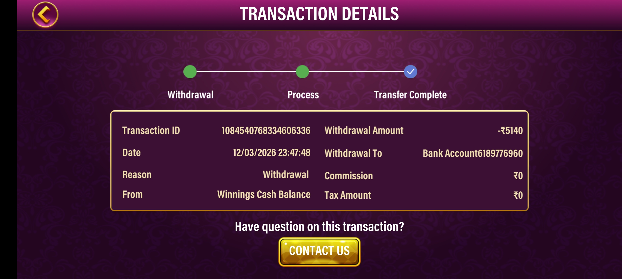 I won 5130 indian rupees than I withdraw that amount but amount not credited to my bank account