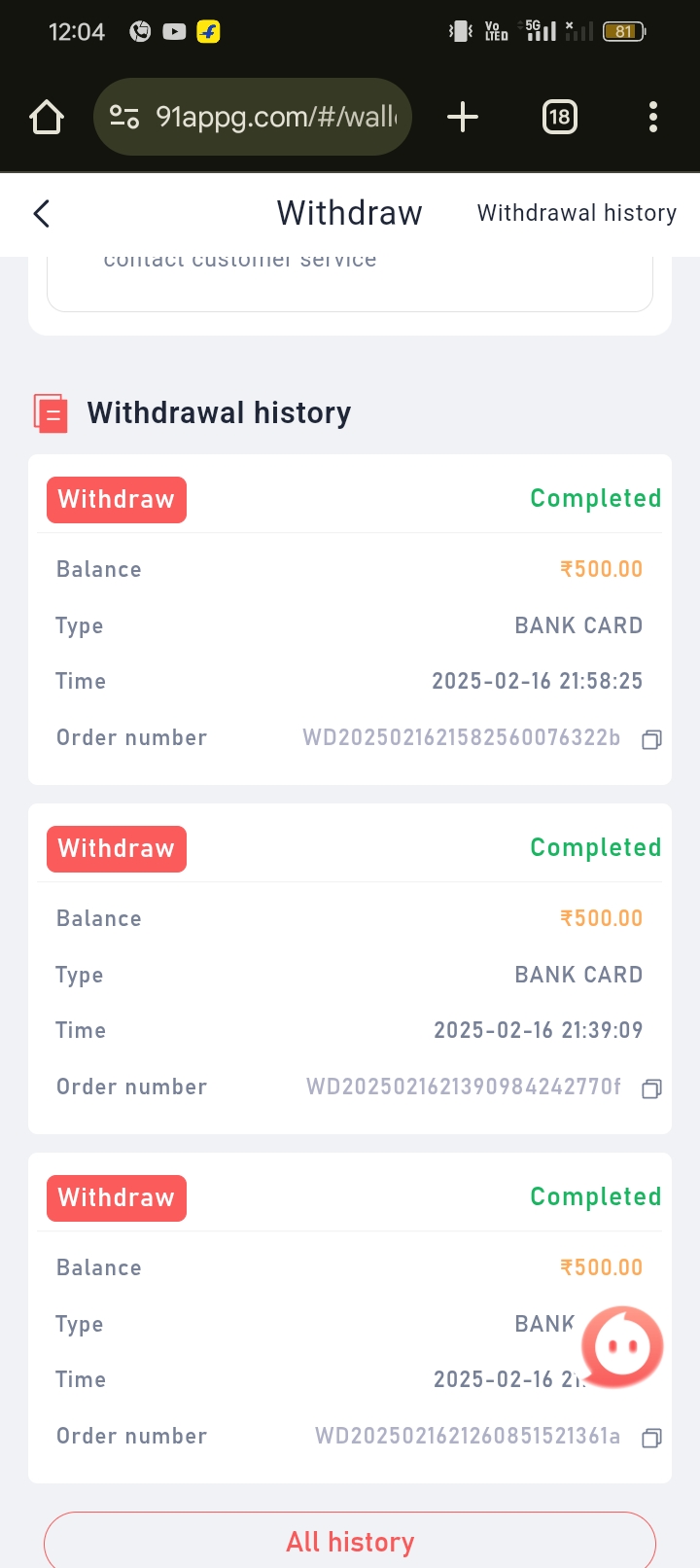 The withdrawal is completed, but the amount of withdrawal is not received.