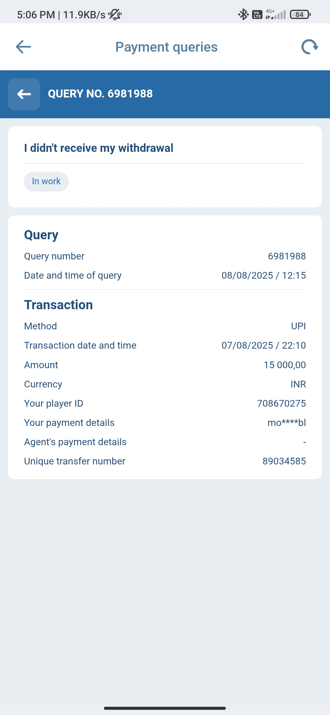 Hi i have requested for withdrawal over a month which is on 8th of August 2025 which is for Rs 15000. Still I didn’t receive my withdrawal and no proper response. Please help