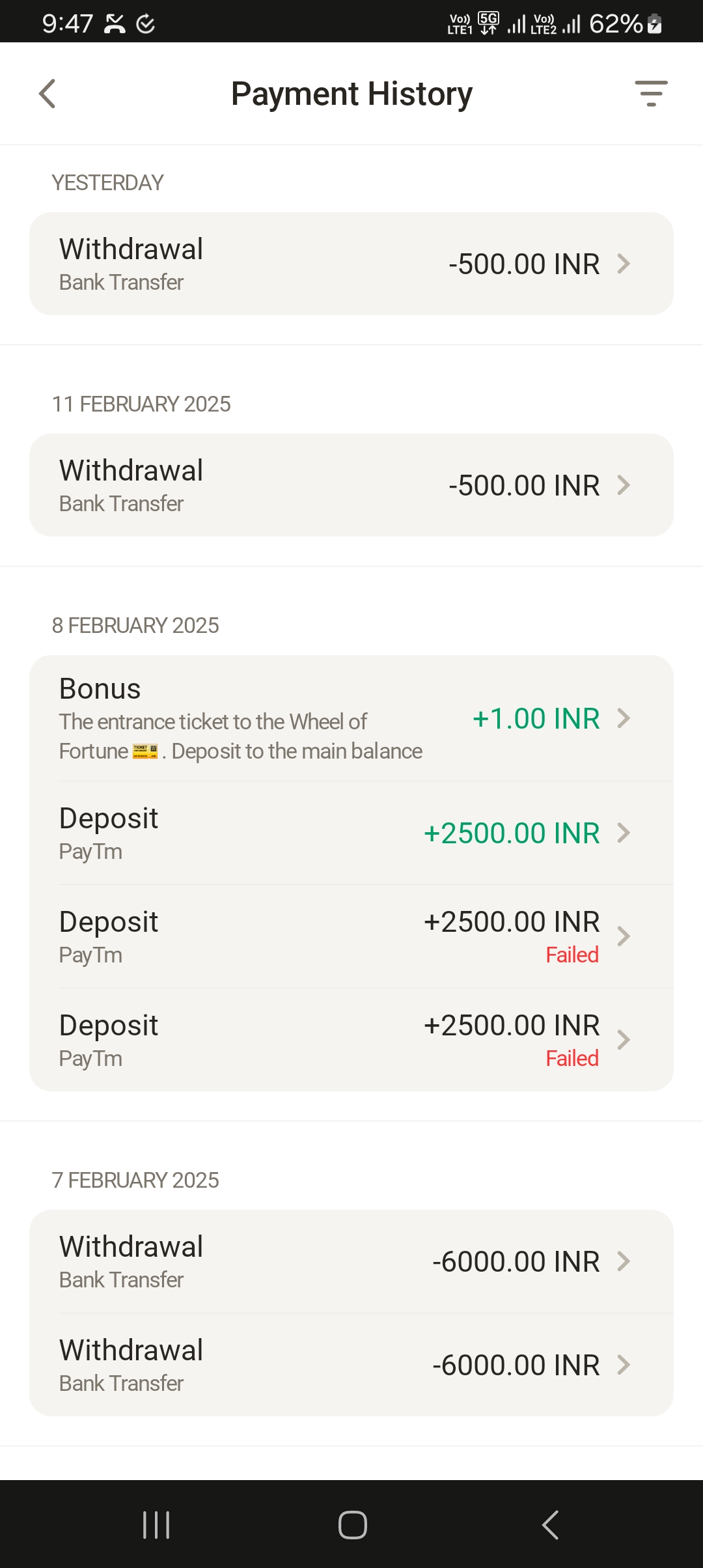 I have withdrawals 6000 and 500 from my Parimatch account to my bank account parimatch status shows the transaction was successfully done but not received in my bank its more than 10 days no update from the Parimatch team