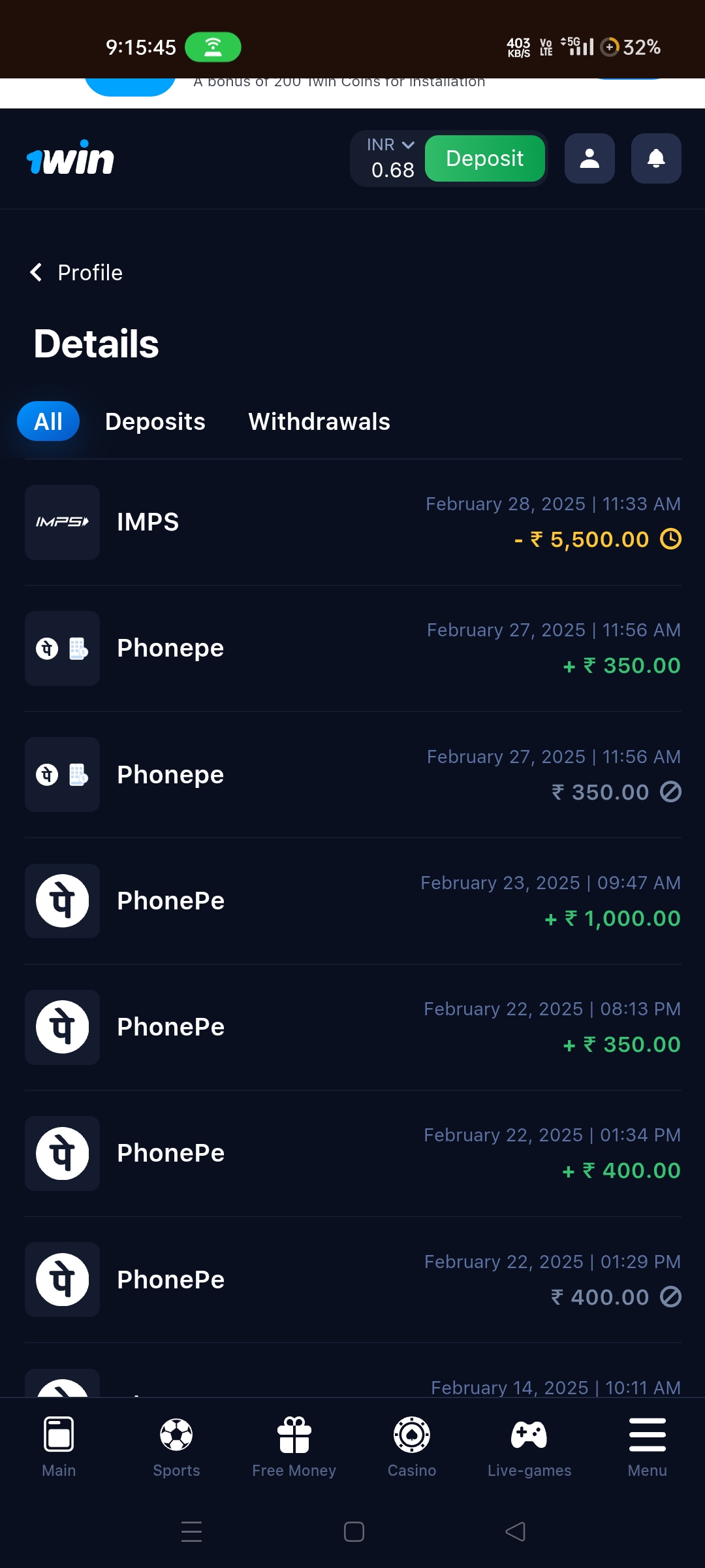 Game ID – 305304852 (1win) – Scam Alert! (Amount: 5500)