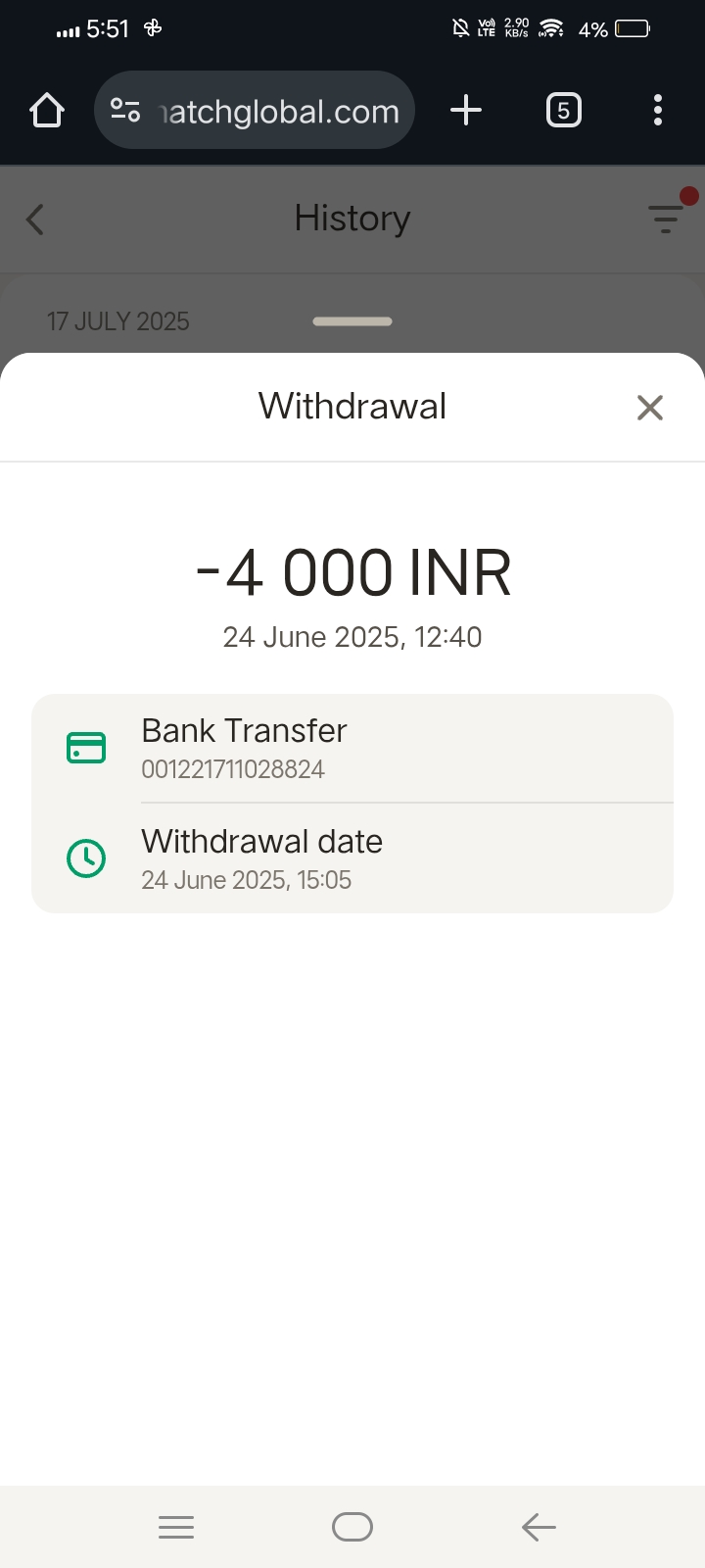 I requested a withdrawal of 4000 INR from my Parimatch account more than 7 months ago, but the amount has still not been credited.