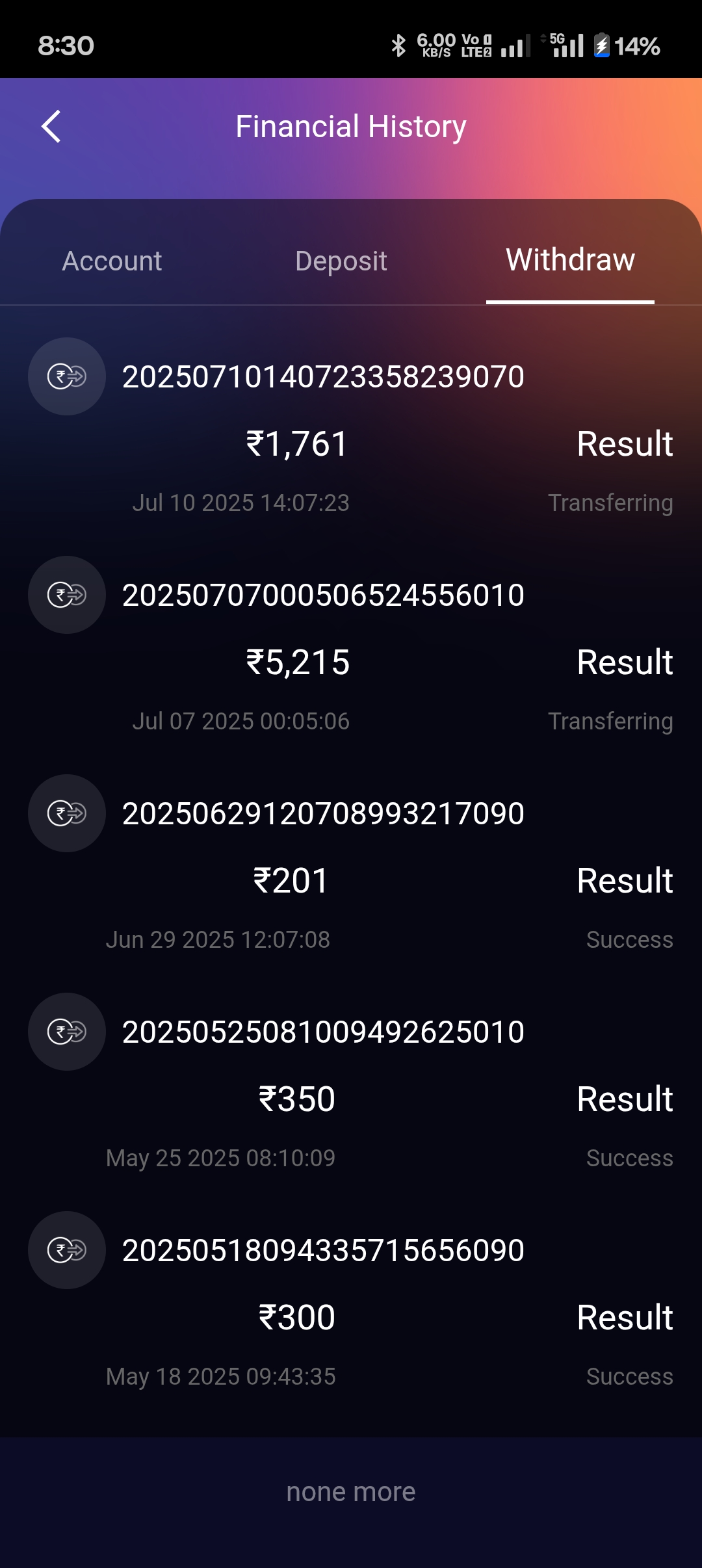 Withdrawal not received payment