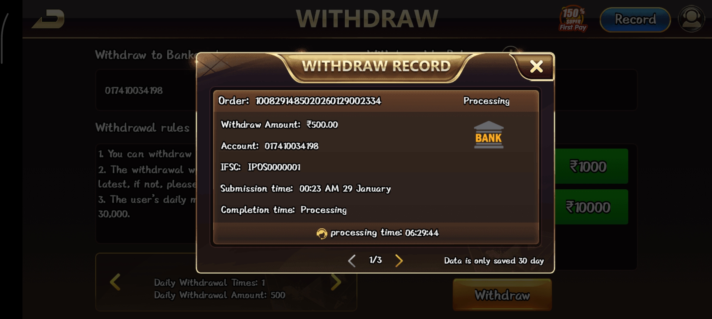 I have not received my withdrawal amount.