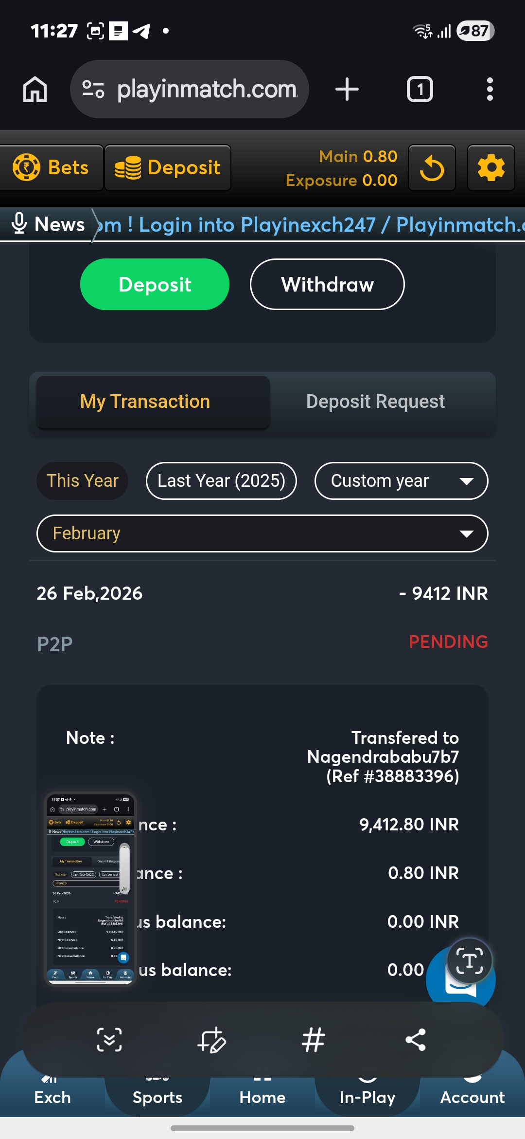Withdrawal problem and player to player transfer problem