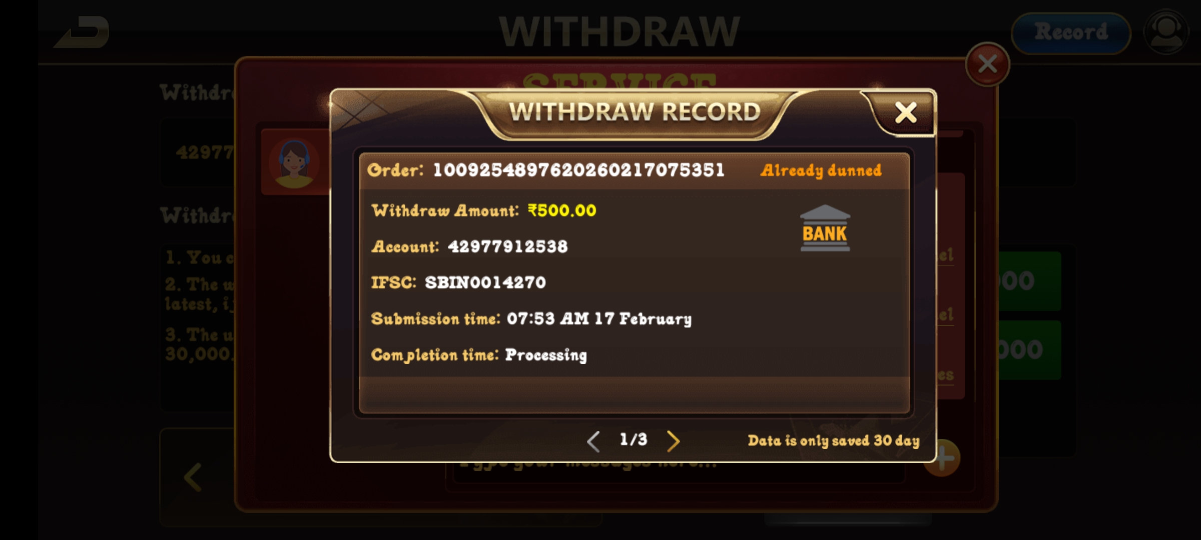 I am withdraw my money from namaste teen patti app but it 2 days still processing ammount not credited