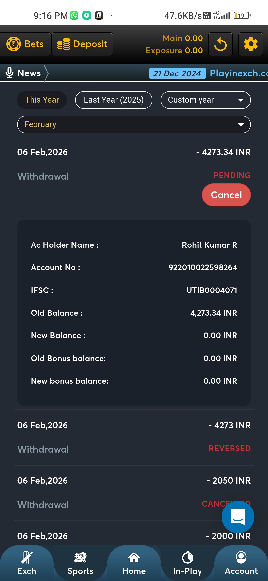 Hello I won 4273rupee after that I submitted Withdrawal request. But it was not credited in my account. The Amount has reversed.