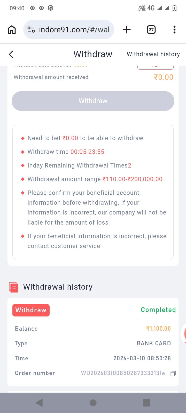 I requested the amount of 1100 rupee order no WD2026031008502873333131a on 10-3-2026 was withdrawal succesful but not credited in my account plz transfer as soon as possible