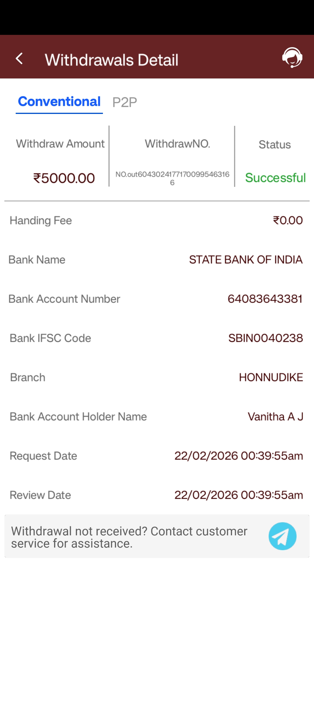 I was withdrawn amount from rummy ho but not credited