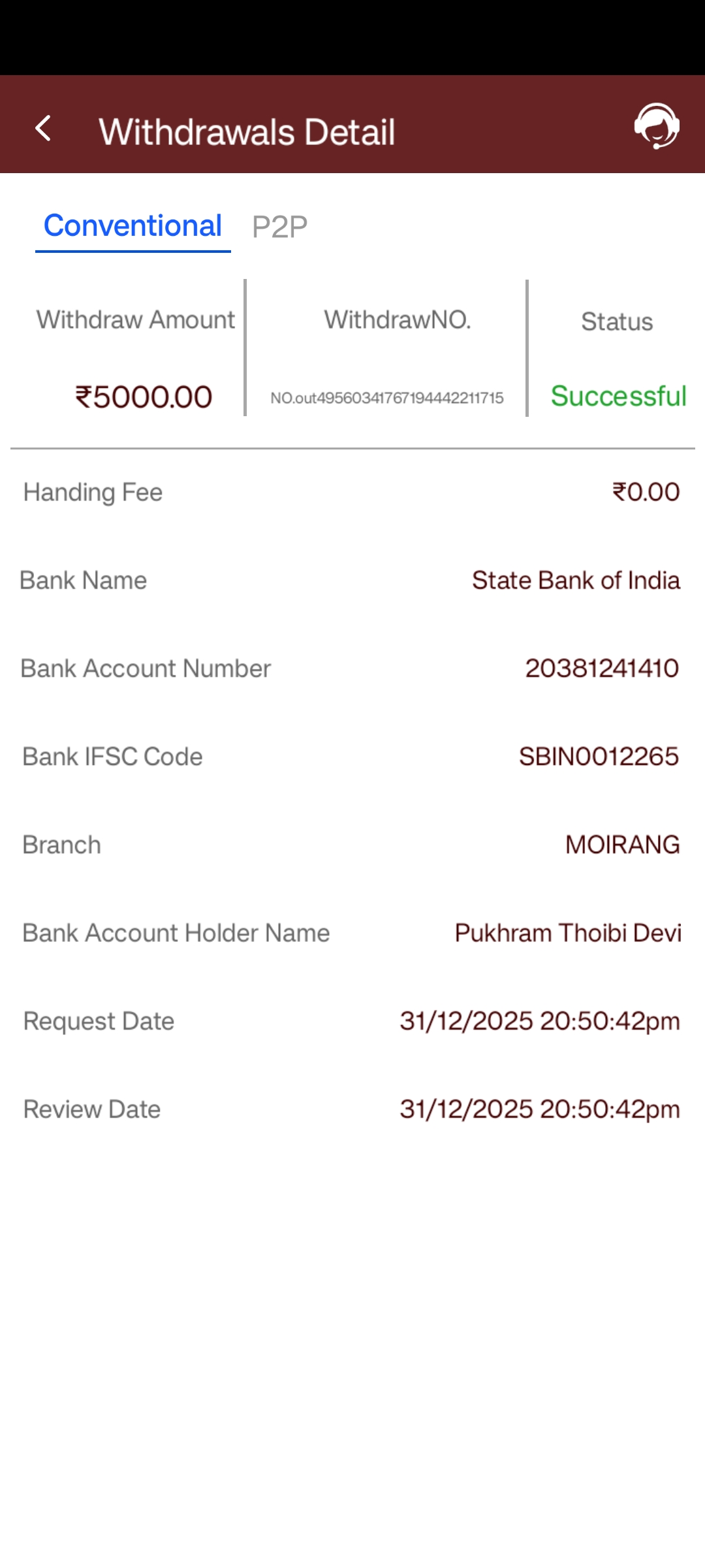 Withdrawal successful but not received in my bank account please resolve this problem as soon as possible