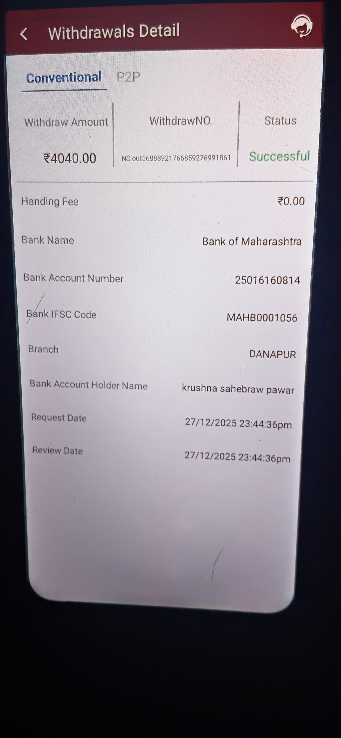 My rummyho game 4040 rupis app withrol successful but not account received plz spot mi….