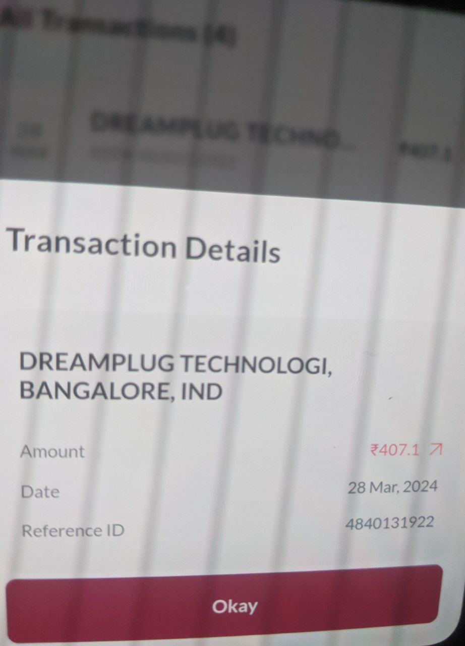 On 28th March, without my consent there is a transaction made of rs 407.1 INR from my credit card, while checking the statement it memories as “Dreamplug technologyi, Bangalore, IND” ….. I need of refund of my money or else I need a valid statement why it’s debt without my knowledge.