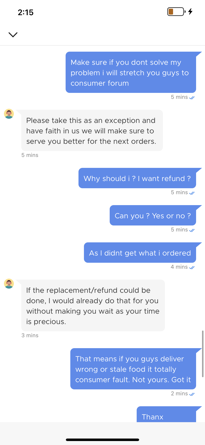 I ordered chicken & egg gravy chowmin from Tasty Tasty restaurant order no- 2264301266, on 2/09/2021 but the food they delivered is wrong, not a single piece of chicken was there in the food & even the taste was worst. As usual i contacted chat support but they didn’t solve my issue. I asked them to pickup the food & to return my money back but they said its not possible for them to issue refund or to pick up the food. My point is that when you guys have delivered a wrong item then why cant you refund our money & take back the food. Its hard working money & we are not getting the food free of cost.