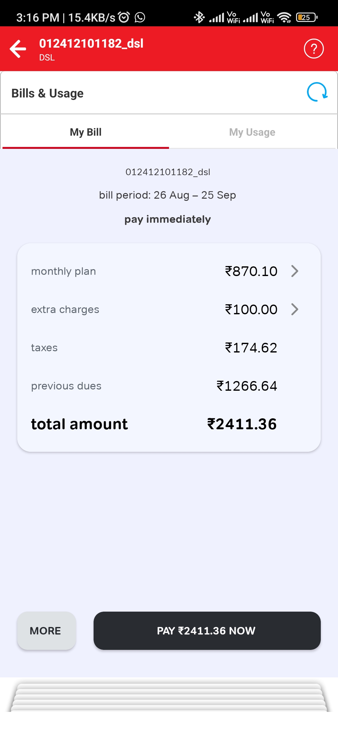 Lets start from the beginning, i asked for a prepaid connection in July but they installed the postpaid connection without informing me and the plan was for 3 months which should be ending on 6th September but i shifted in Gurgaon from Delhi in August and shifting charge was showing only 300₹. But they have sent 1266₹ due for the August month and deactivated the internet and after that i haven’t used their services and now they have sent again the bill for September month and the total is around 2500₹.