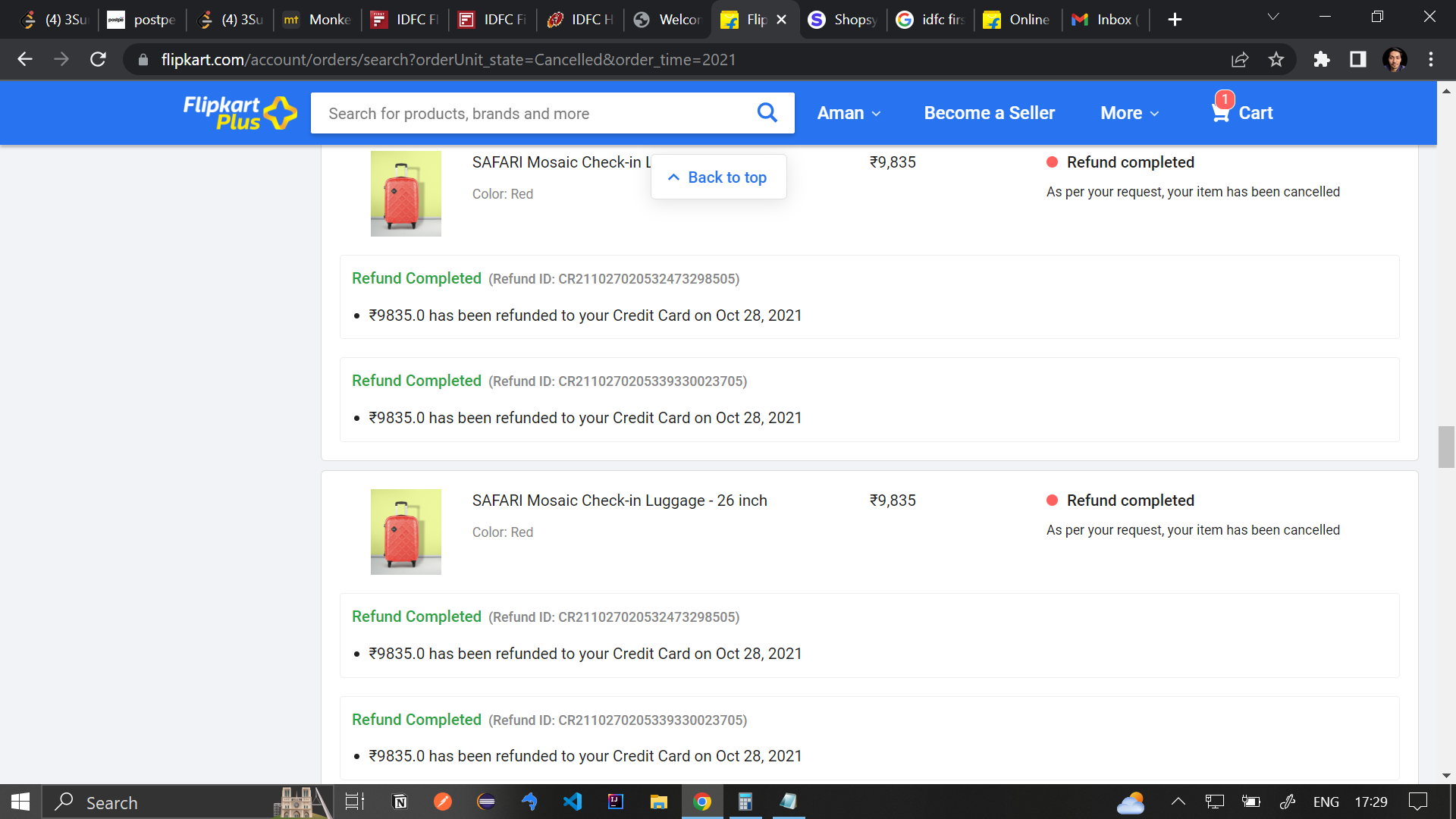 The loan was taken via flipkart pay later services, which was a loan for 2 similar items (safari trolley bag) of (Rs. 9,835 X 2 = 19,670). The order was done by me on 27th Oct 2021 and was cancelled on the same day.