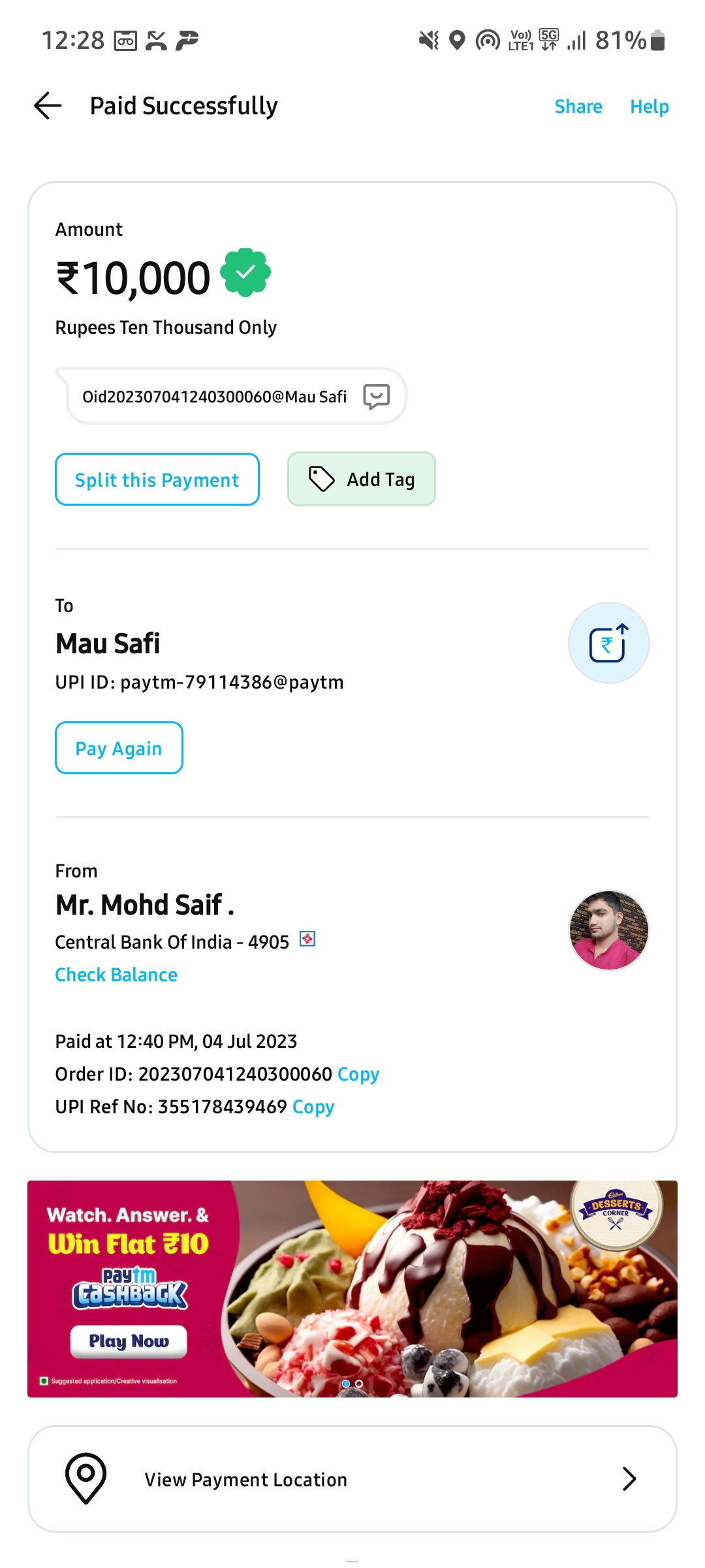 I have payed 10k amount to a wrong person and that person is not responding me back not answering me. Please help me out into this asap.