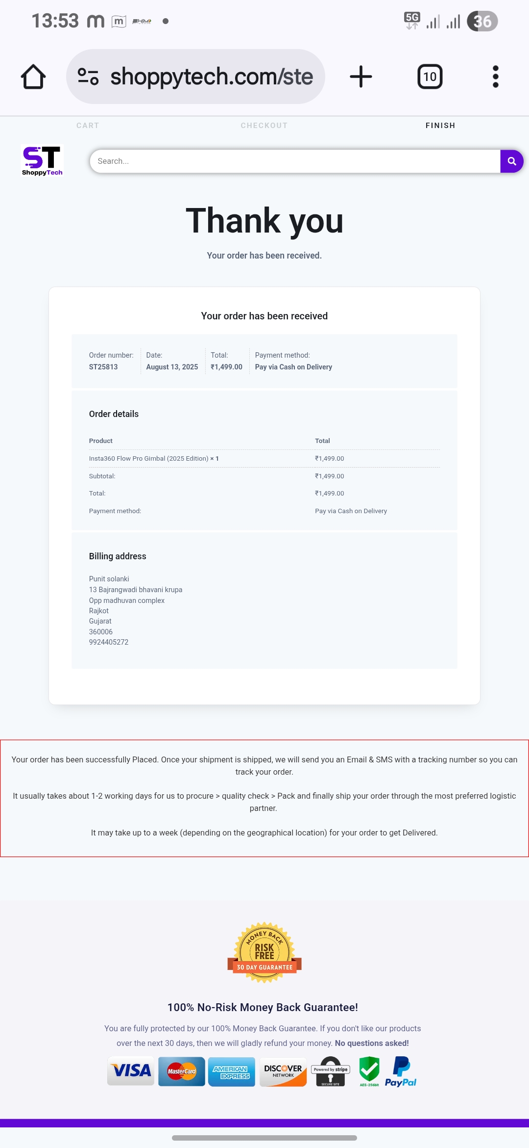 I want to orderd gimble and i got selfy stick and thats product approxprise 60 rs.