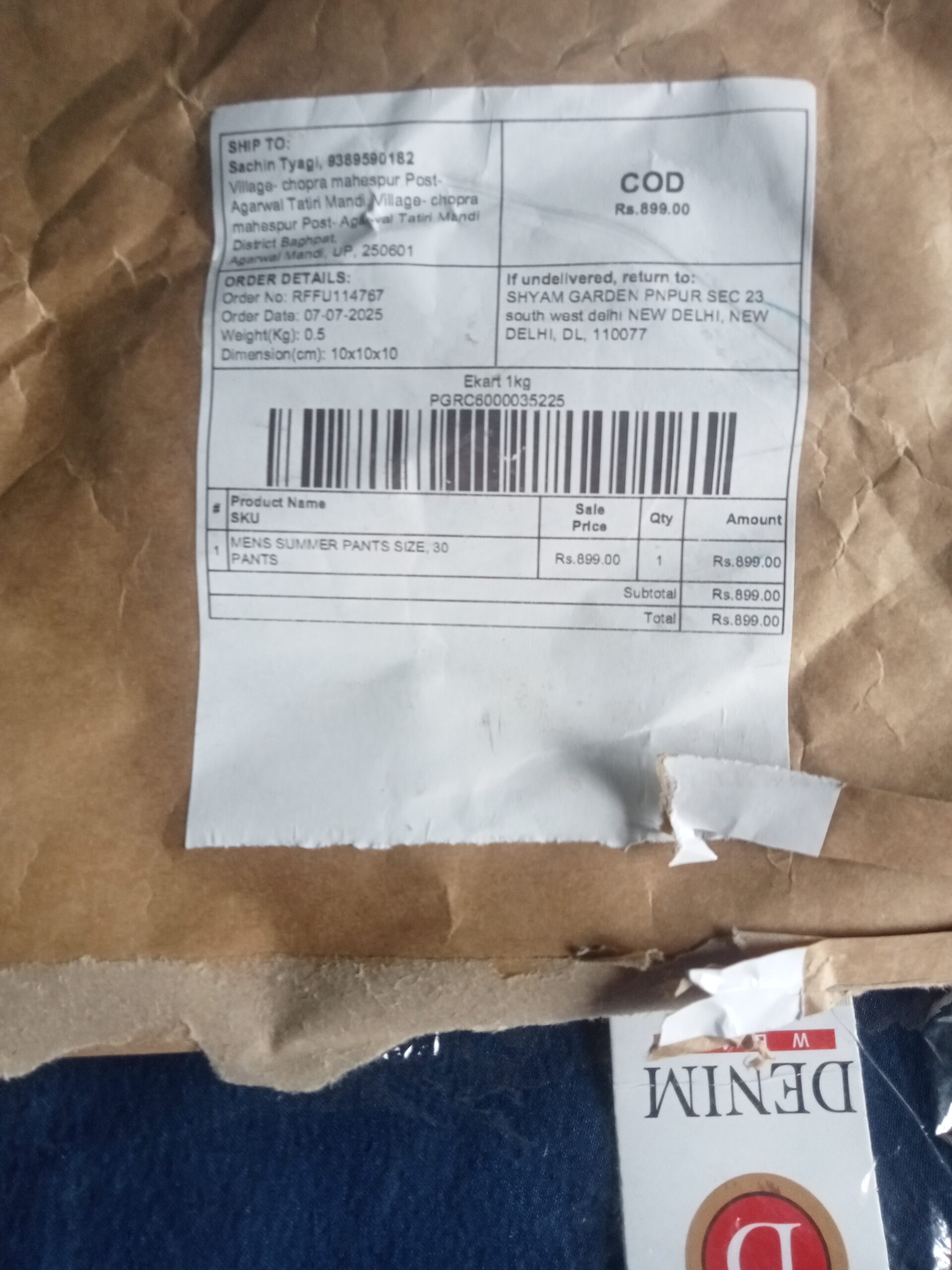 I order 2 cargo pants at Rs 999/- but they delivered me used 1blue jeans pant instead of cargo pants. After that the site was not open and the delivery boy didn’t pick up the call.