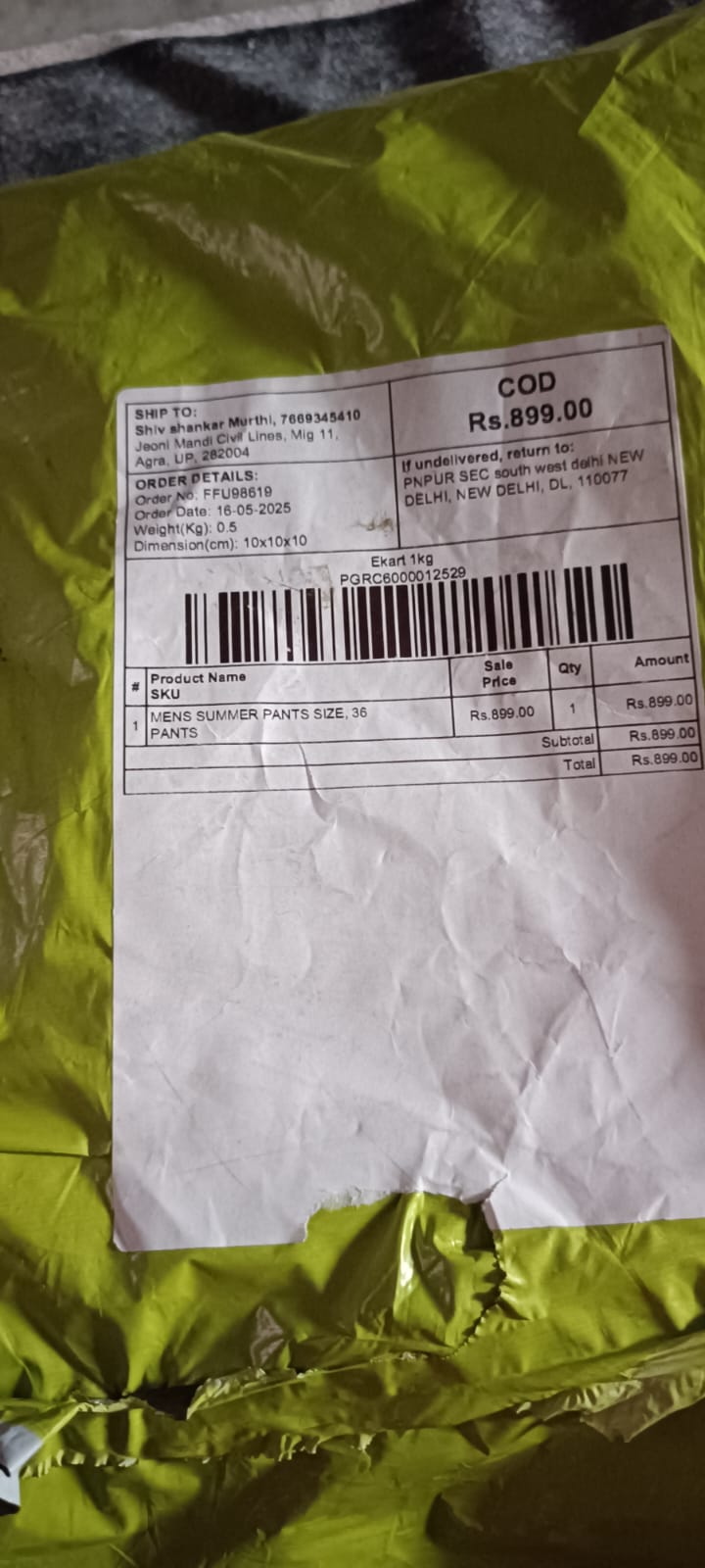 I ordered 2 summer wear pants but they sent 1 jeans pant