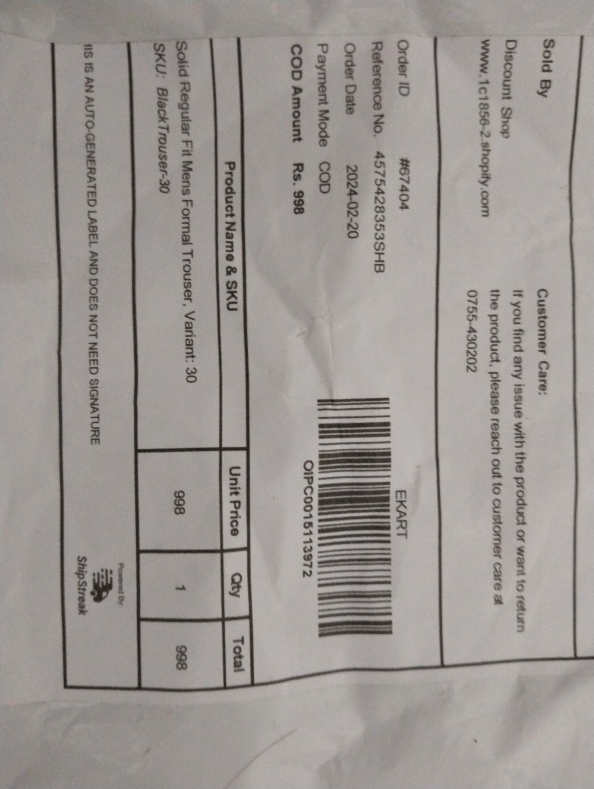 This was busy 1 get 1 free order but in my absence only one trouser black delivered to my wife .
