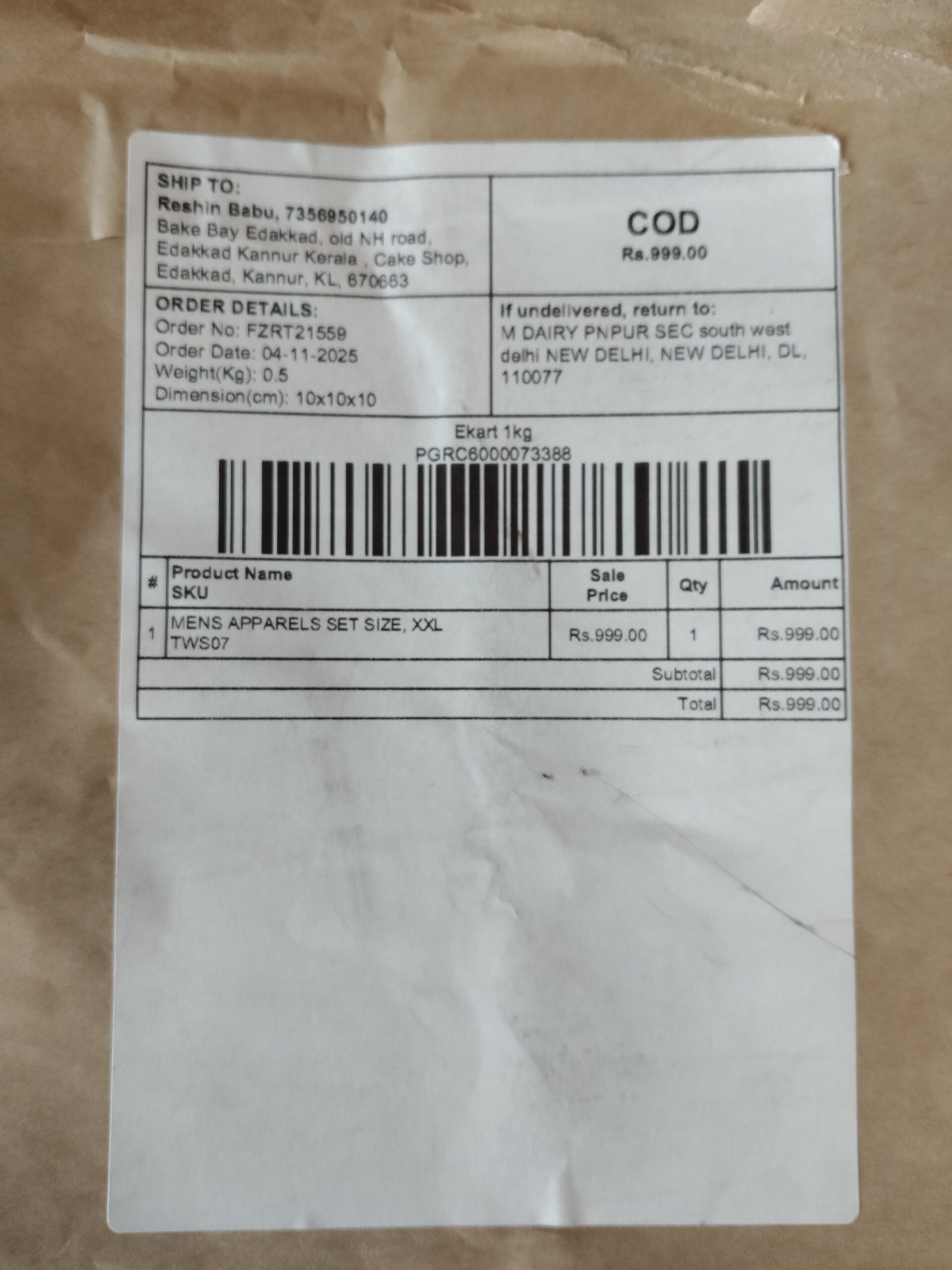 Im ordered 4 shirts worth Rs.999 but I received 2nos local T shirts
