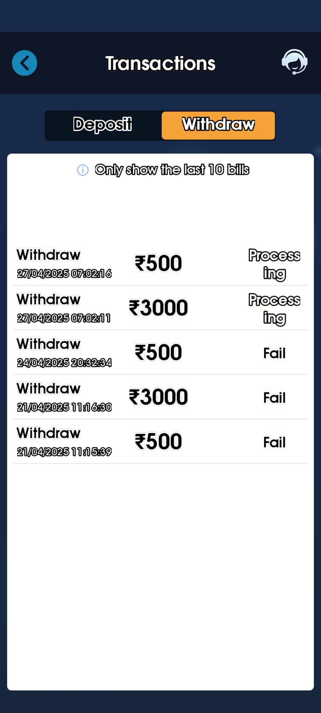 I deposited 700 rupees in this game and I won 3000 but I am not able to withdraw