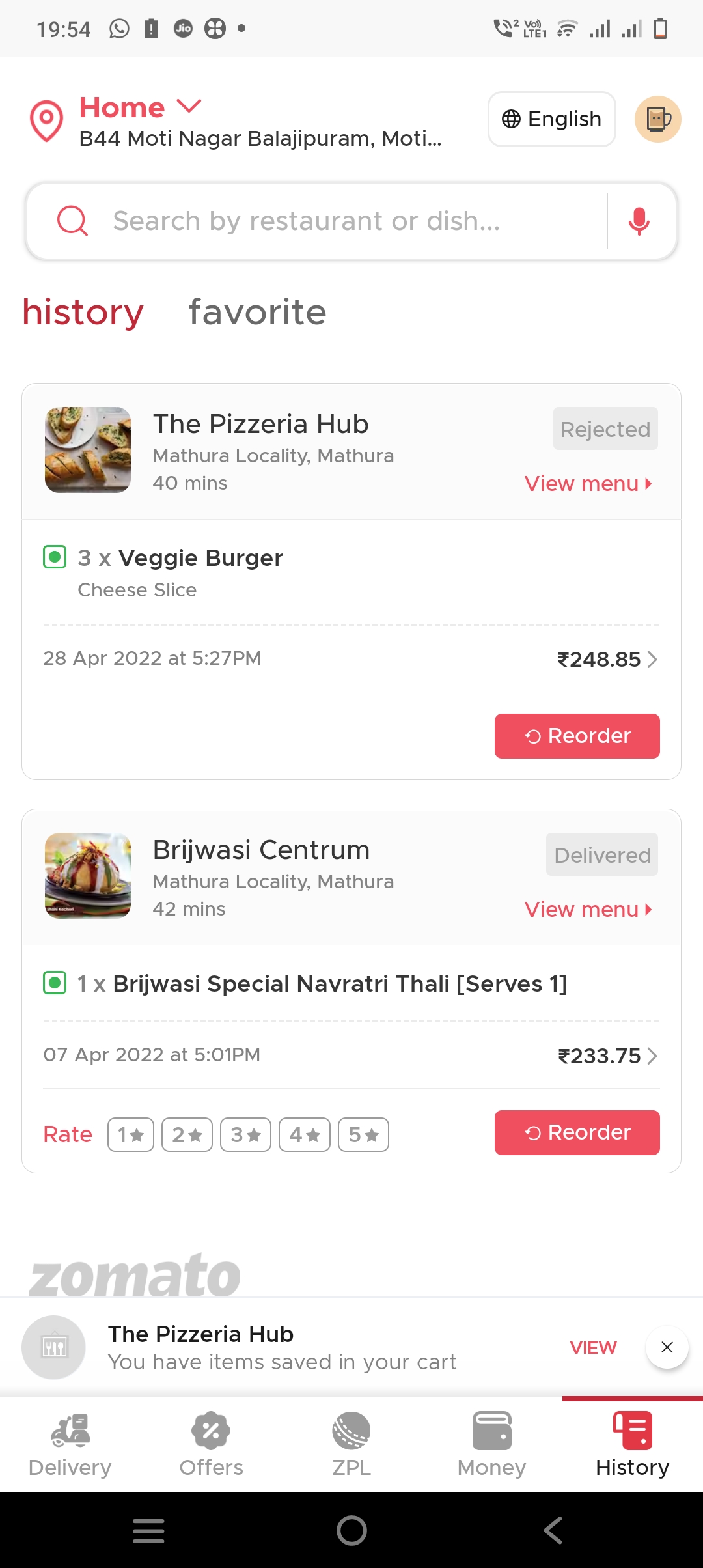 Today we have order 3 Burger through zomato rs 248.85 .but i can’t recived my order .order from the pizzeria hub.and also one plate momos and 2 Maaza this amt rs 149 though pytm .also given to ZOMATO delivery boy.